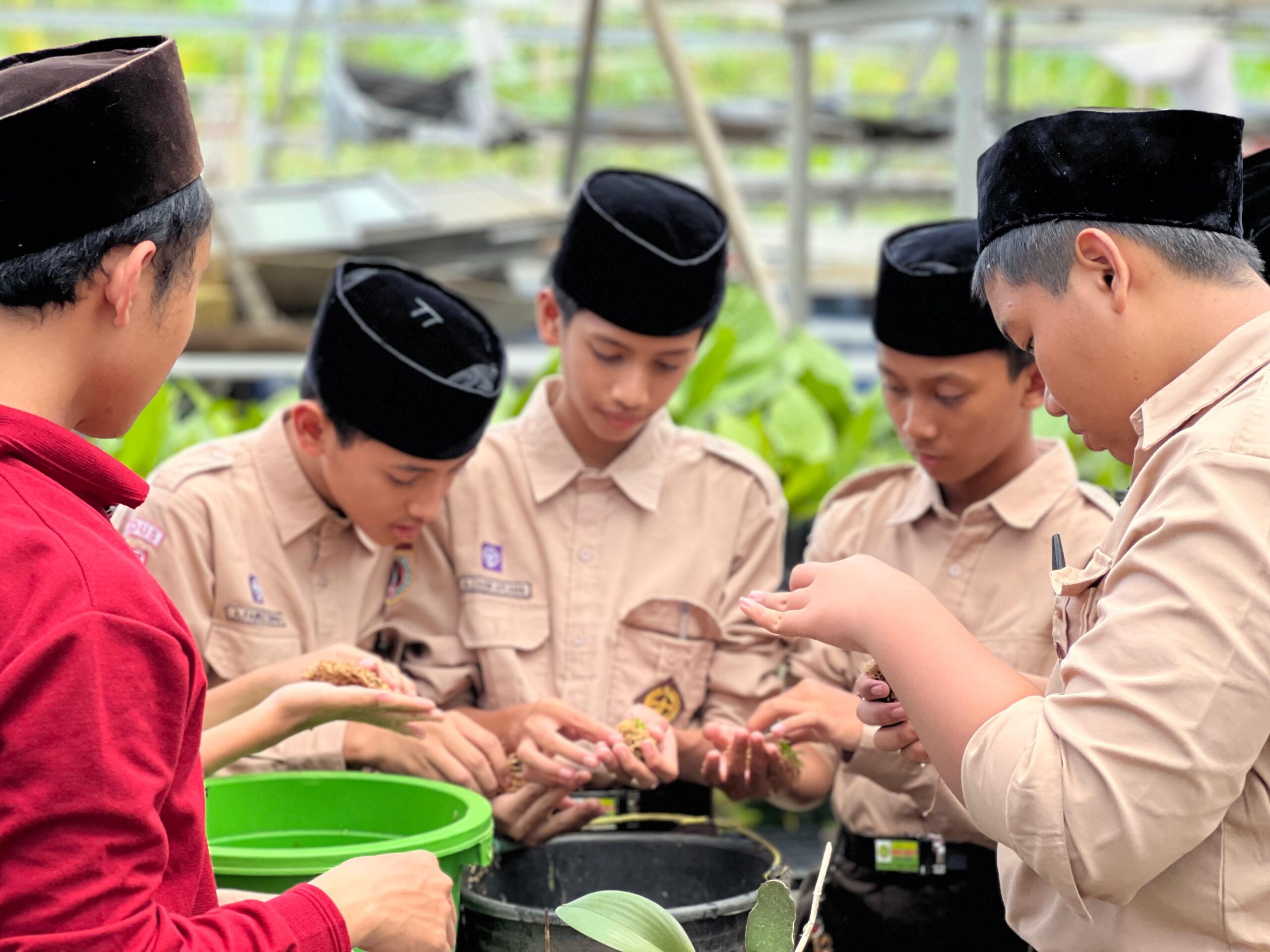 Para santri terlihat antusias mengikuti kegiatan tersebut. Selain praktik langsung di greenhouse, mereka juga diajak mencatat perkembangan tanaman dan mendiskusikan hasil pengamatan sebagai bagian dari pembelajaran berbasis proyek dalam P5RA.